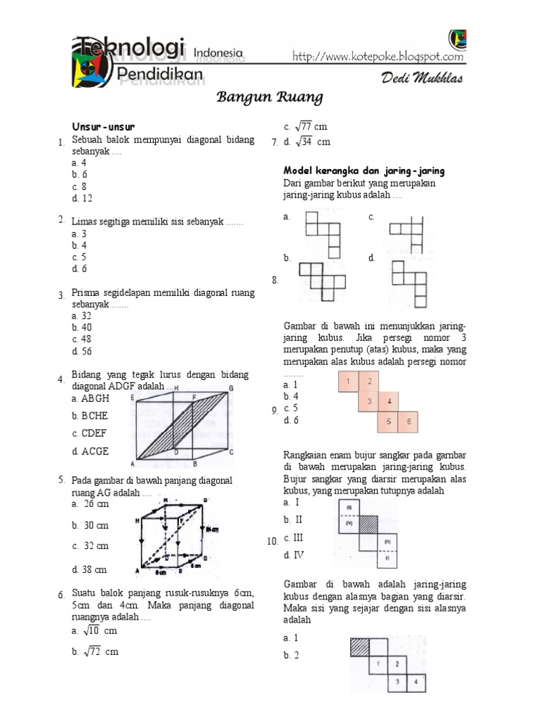 Kumpulan rumus bangun ruang beserta contoh soal dan pembahasannya. Perhatikan kembali gambar bangun yang diberikan. Ketiga sudutnya memilikit besar yang berbeda. Contoh soal beserta pembahasannya mengenai bangun ruang kubus, yuk simak penjelasannya di bawah ini : Berikut contoh soal bangun ruang yang untuk latihan.